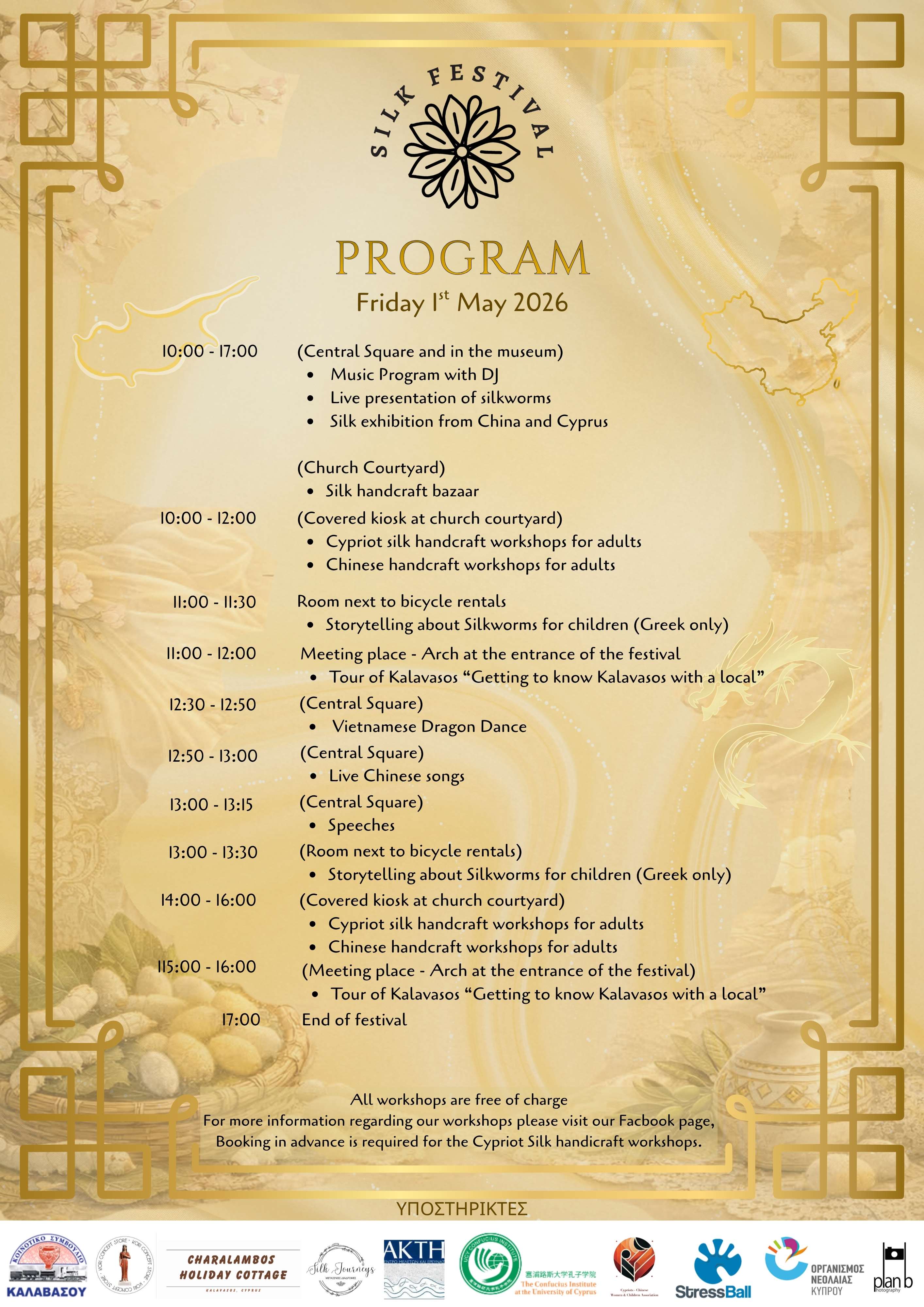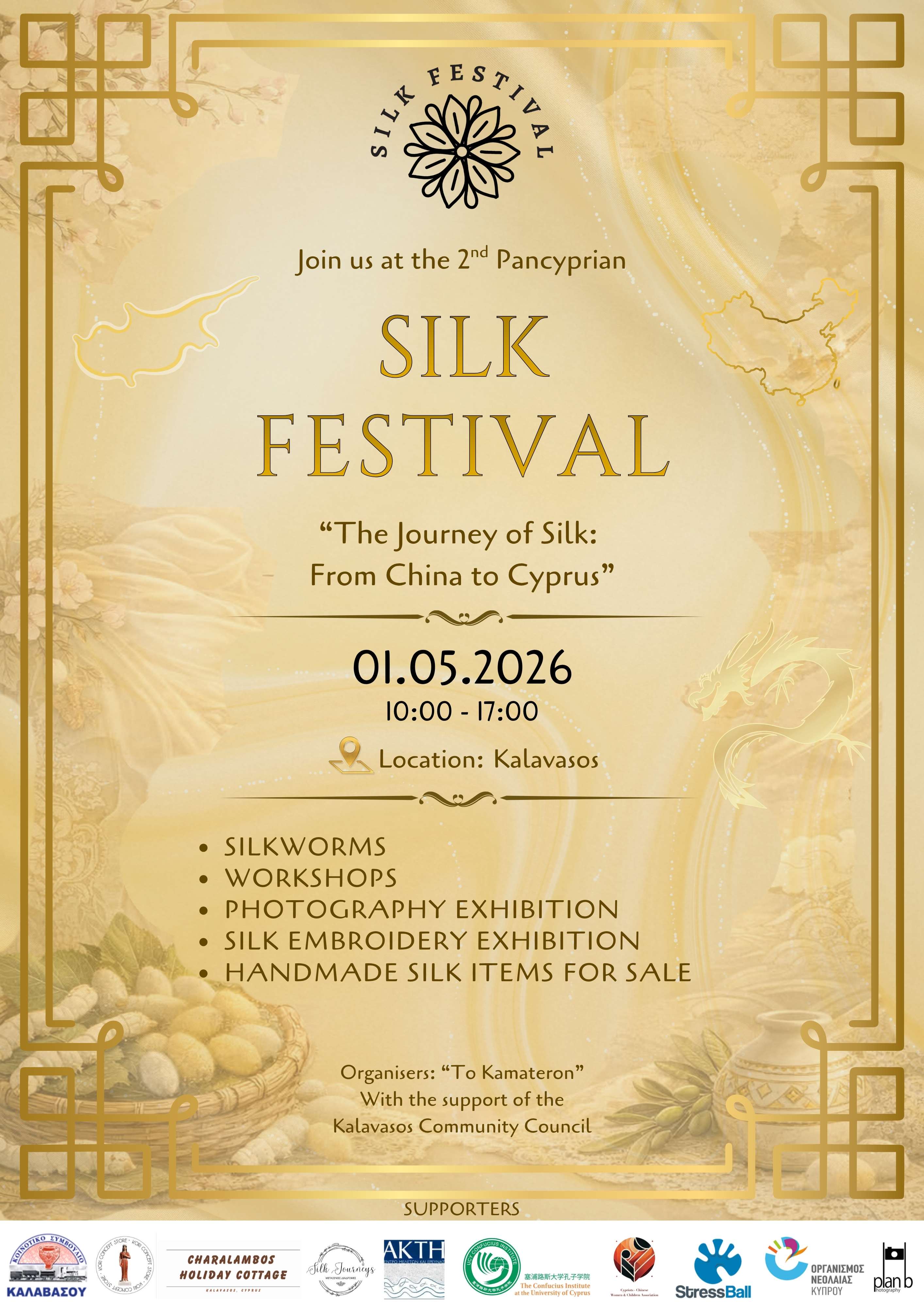 Under the central theme “The Journey of Silk: From China to Cyprus”, the festival highlights the deep cultural connection between the two countries, celebrating centuries of shared heritage through craftsmanship, storytelling, and artistic expression.